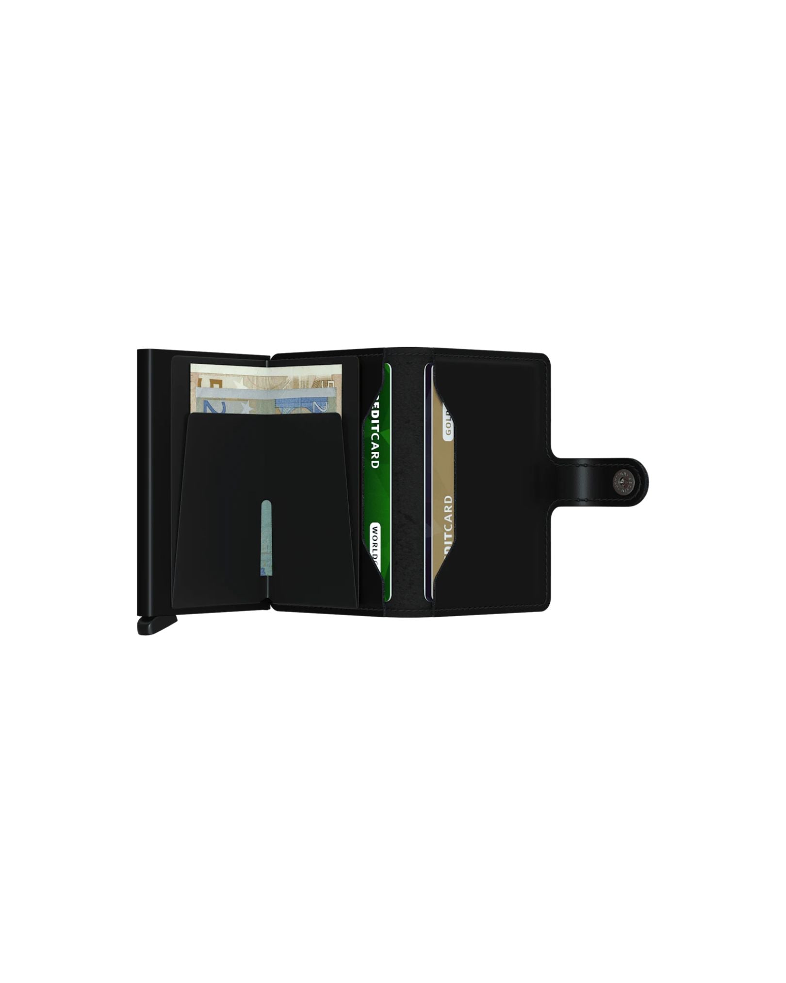 Small in size and surprisingly large in storage capacity, the Miniwallet combines the best of both worlds. The exterior holds banknotes, receipt and cards, while the aluminium Cardprotector allows you to slide out cards with one simple motion and protects them from bending, breaking and unwanted wireless communication.