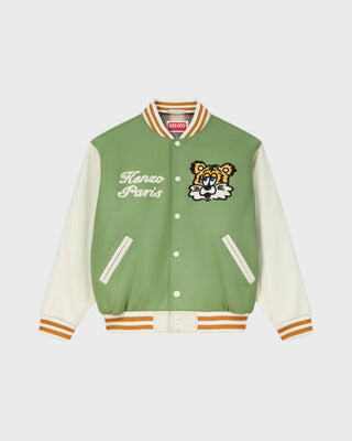 'Kenzo By Verdy' Genderless Varsity Jacket in Wool and Leather - Pale Khaki