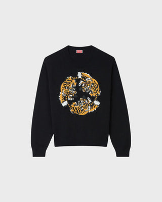 'Kenzo Verdy Market' Genderless Embroidered Jumper in Wool and Cotton - Black