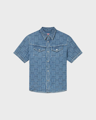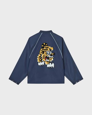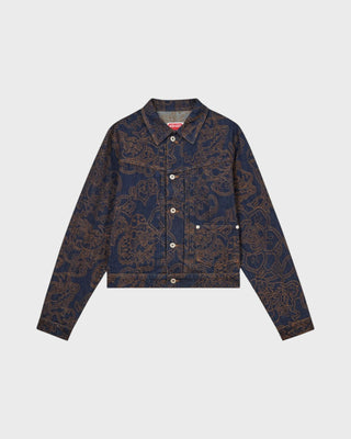 'Kenzo By Verdy' Embroidered Trucker Jacket in Japanese Denim - Rise Denim Blue