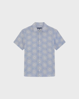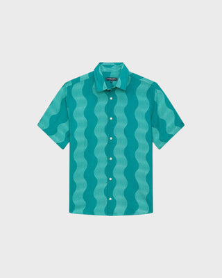 Castro Cabana Stripe Linen Classic Shirt - Peacock Blue & Club Green