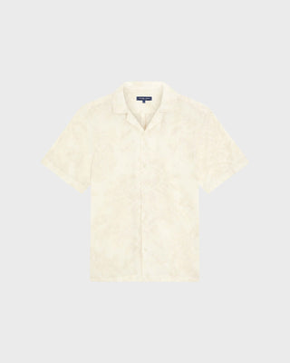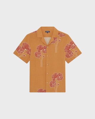 Roberto Linen SS Shirt Linear Floral Print - Almond & Coral Rose