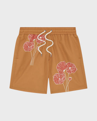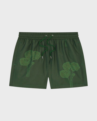 Rio Swim Short Linear Floral Jacquard Print - Dark Parakeet Green