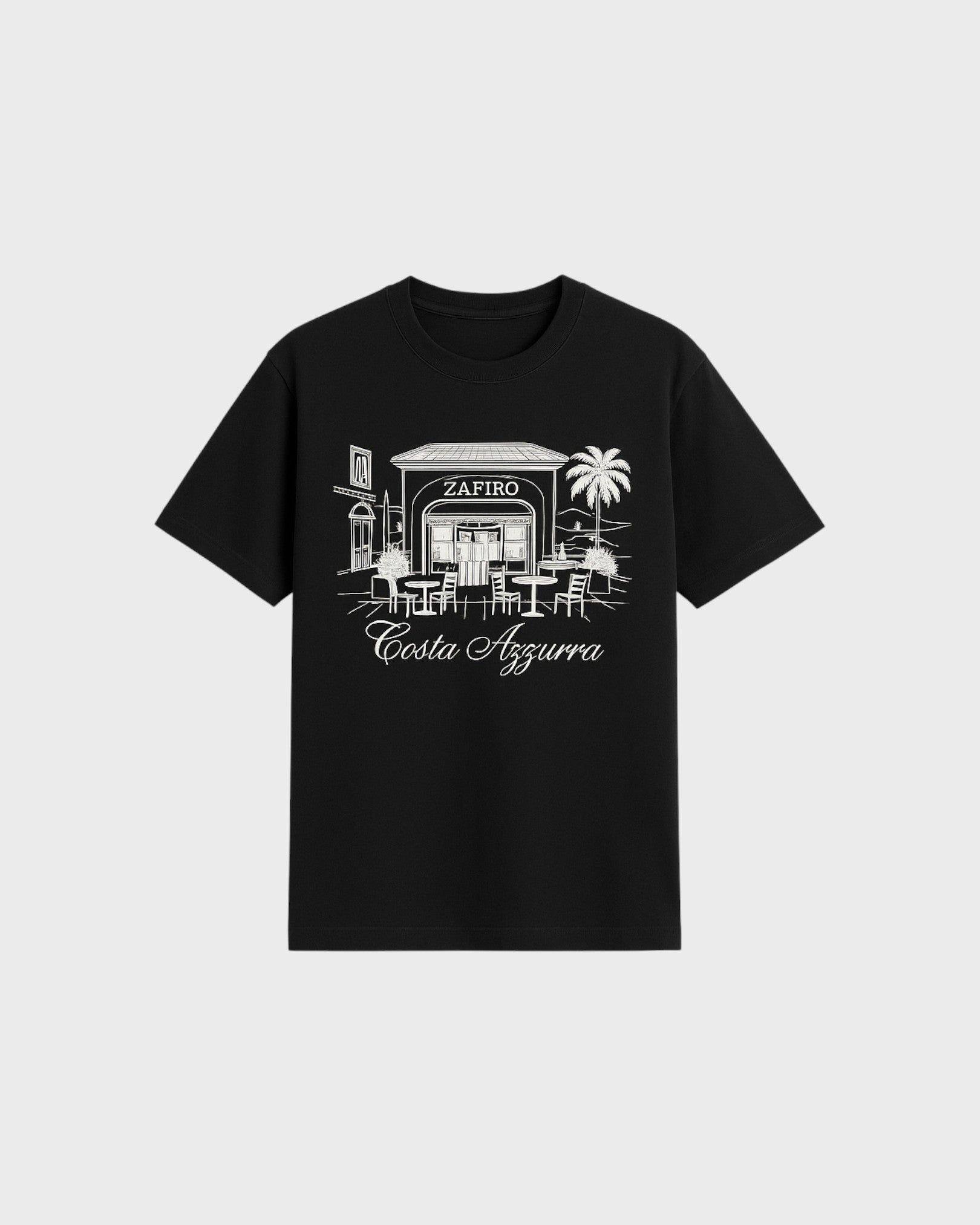 The Bottega Azzurra T-Shirt in black captures coastal confidence with a modern edge. Its design mirrors the balance between freedom and refinement — bold enough for a statement, soft enough for effortless wear. Whether in Puerto Rico or abroad, it’s made for those who live by the rhythm of the coast.