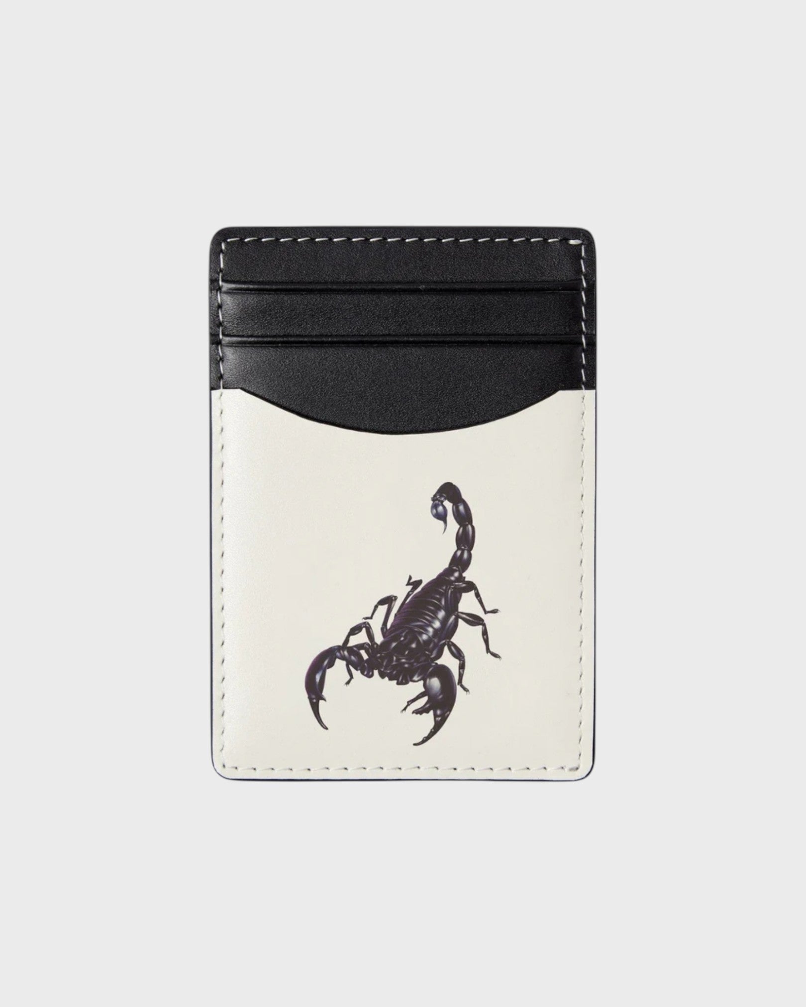 From our Penny Loafers to your back pocket, the Dean Scorpion Card Holder has landed. Crafted from leather, featuring our popular Scorpion print rendered by our in-house artists, before being digitally printed directly onto the card holders' front. Completed with six slots for cards and a seventh lined in nylon at the wallet’s side with gold embossed D+D branding and contrast stitching.