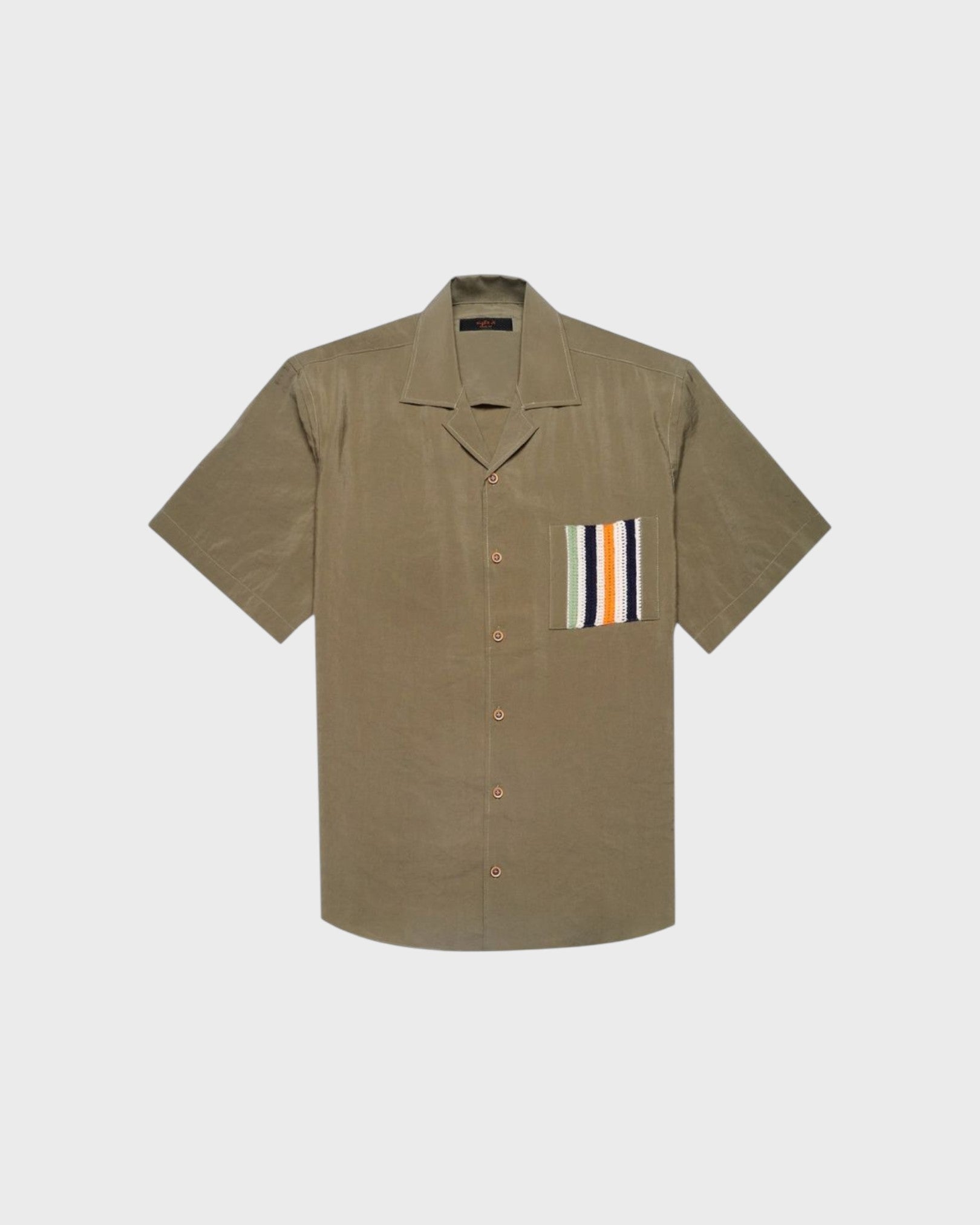 Lucky Pocket Short Sleeve Button Up Shirt - Khaki
