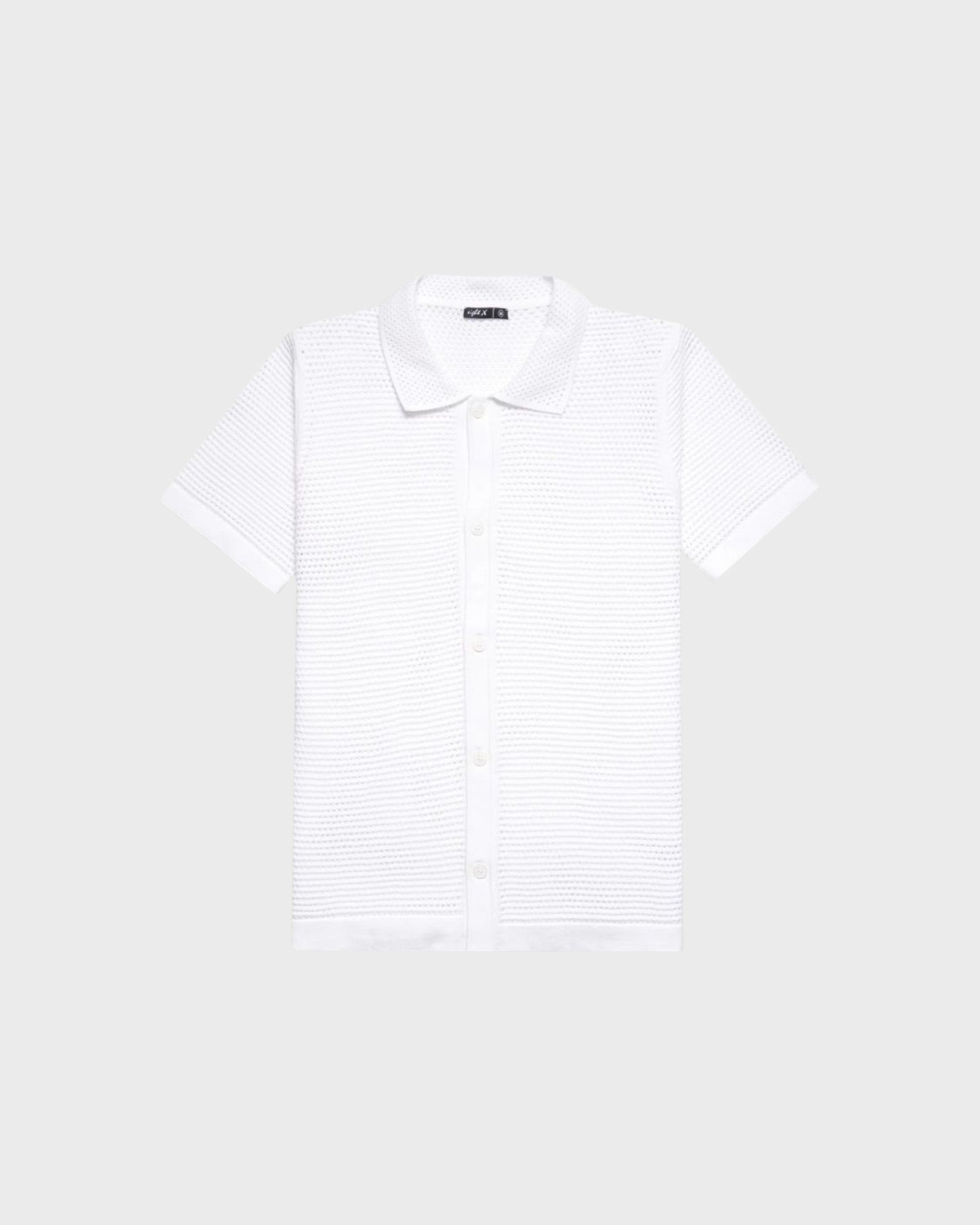 The Docker Knit Button Up Short Sleeve Shirt - White