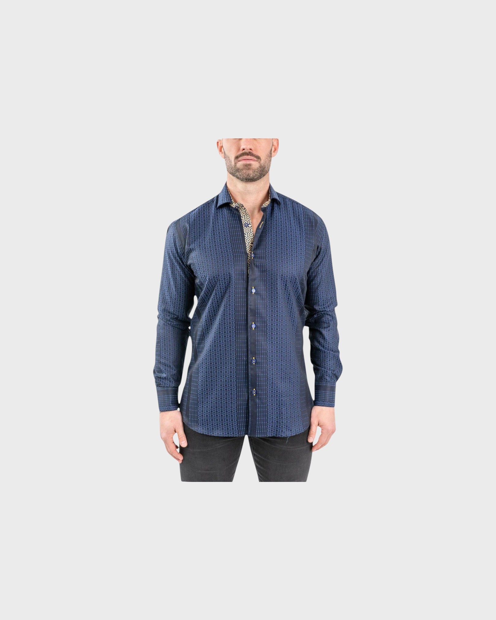 A dusk-to-dawn style fashion dress shirt by Maceoo is an essential men’s wardrobe staple. Made from a futuristic blended fabric from Italian mills. This fabric will leave you feeling and looking great. Tailored for a perfect balance between a regular and trim fit, it accentuates the body whilst leaving room for comfortable movement.