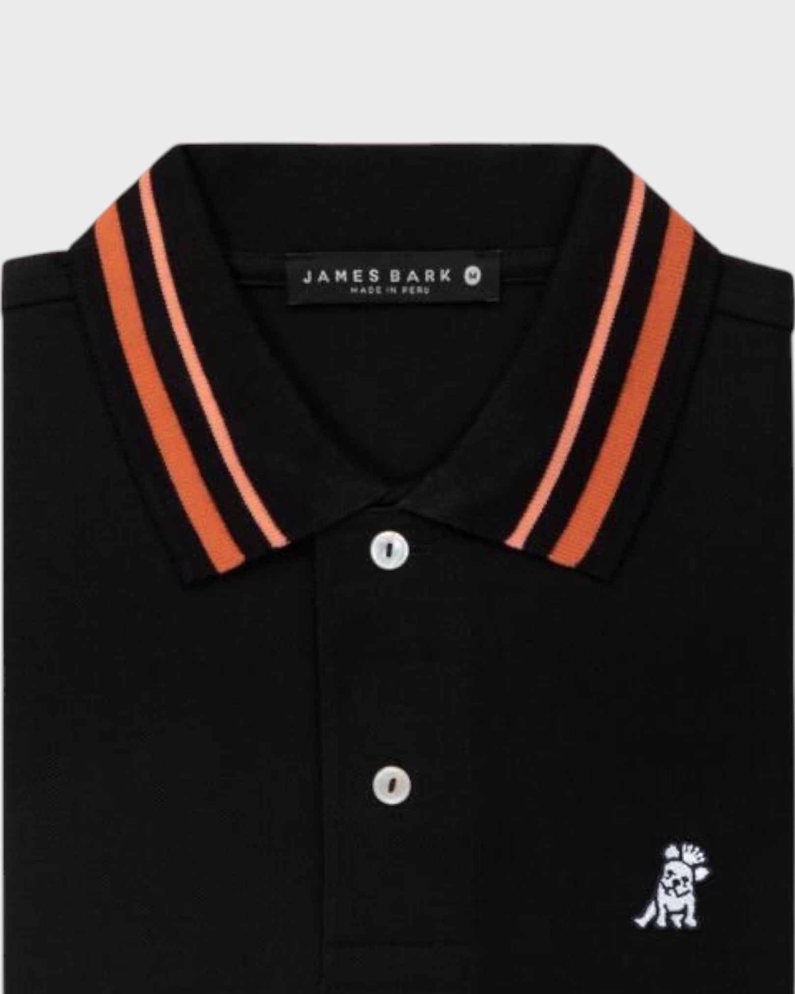Men's Striped Accents Pique Polo Shirt - Black A11