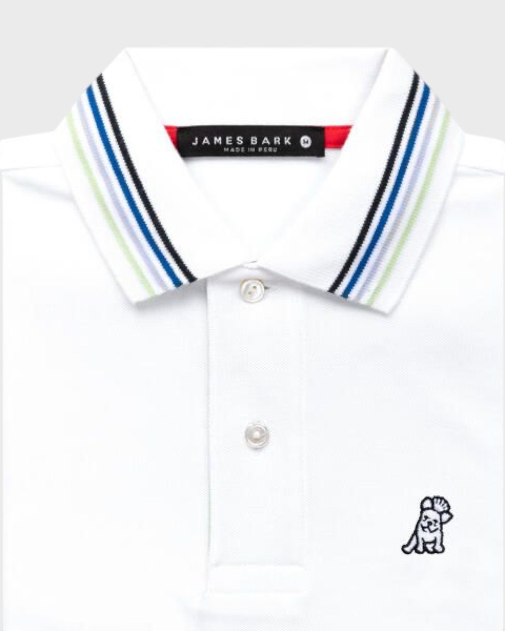 Men's White Red Stripe Details Polo Shirt - White Blue
