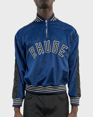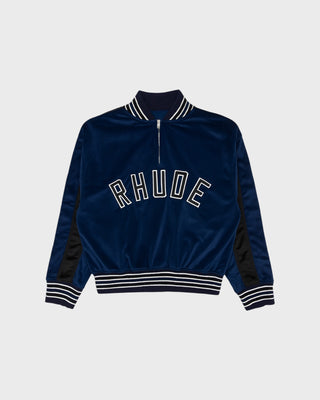 Velour Track Quarter Zip-Up-Navy/Black/White