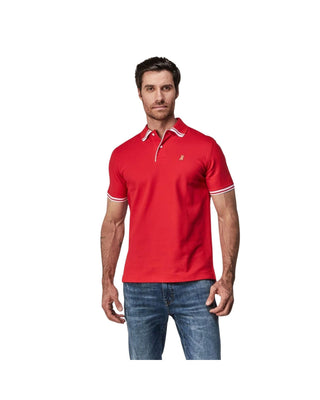Men's Striped Accents Pique Polo Shirt - Risk Red A206