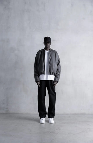 Faux Leather Oversized Cropped Bomber - Charcoal