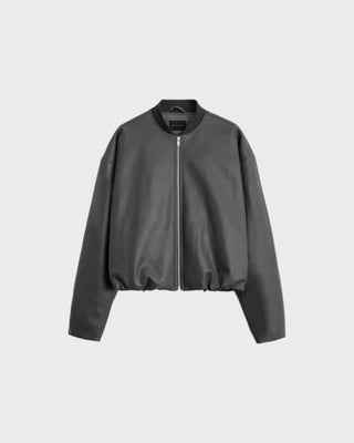 Faux Leather Oversized Cropped Bomber - Charcoal