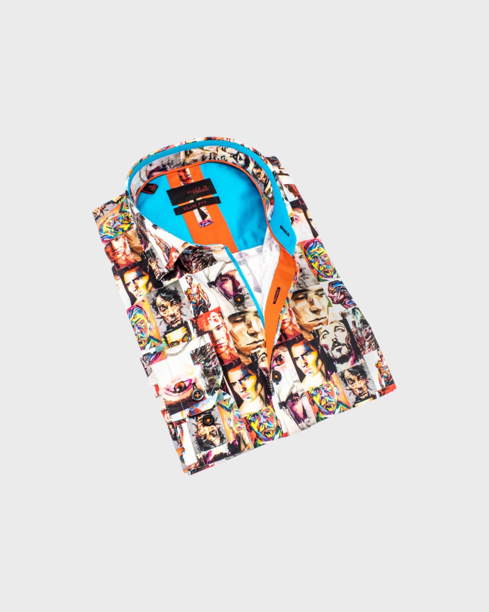 One of the most striking pieces of our collection, Chromatic Visage is an initial stun of color; take a closer look and you'll find an array of meticulously rendered portraits.