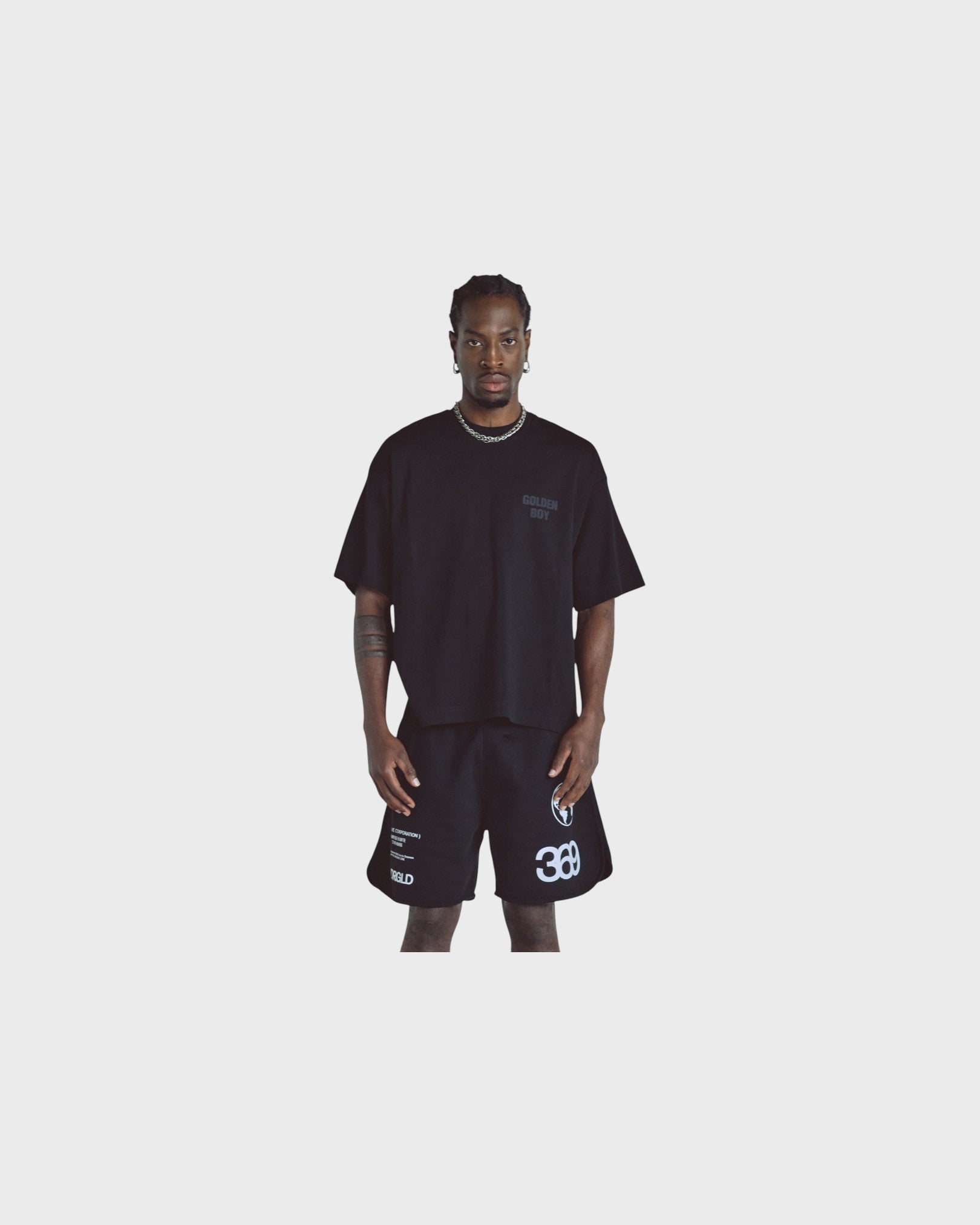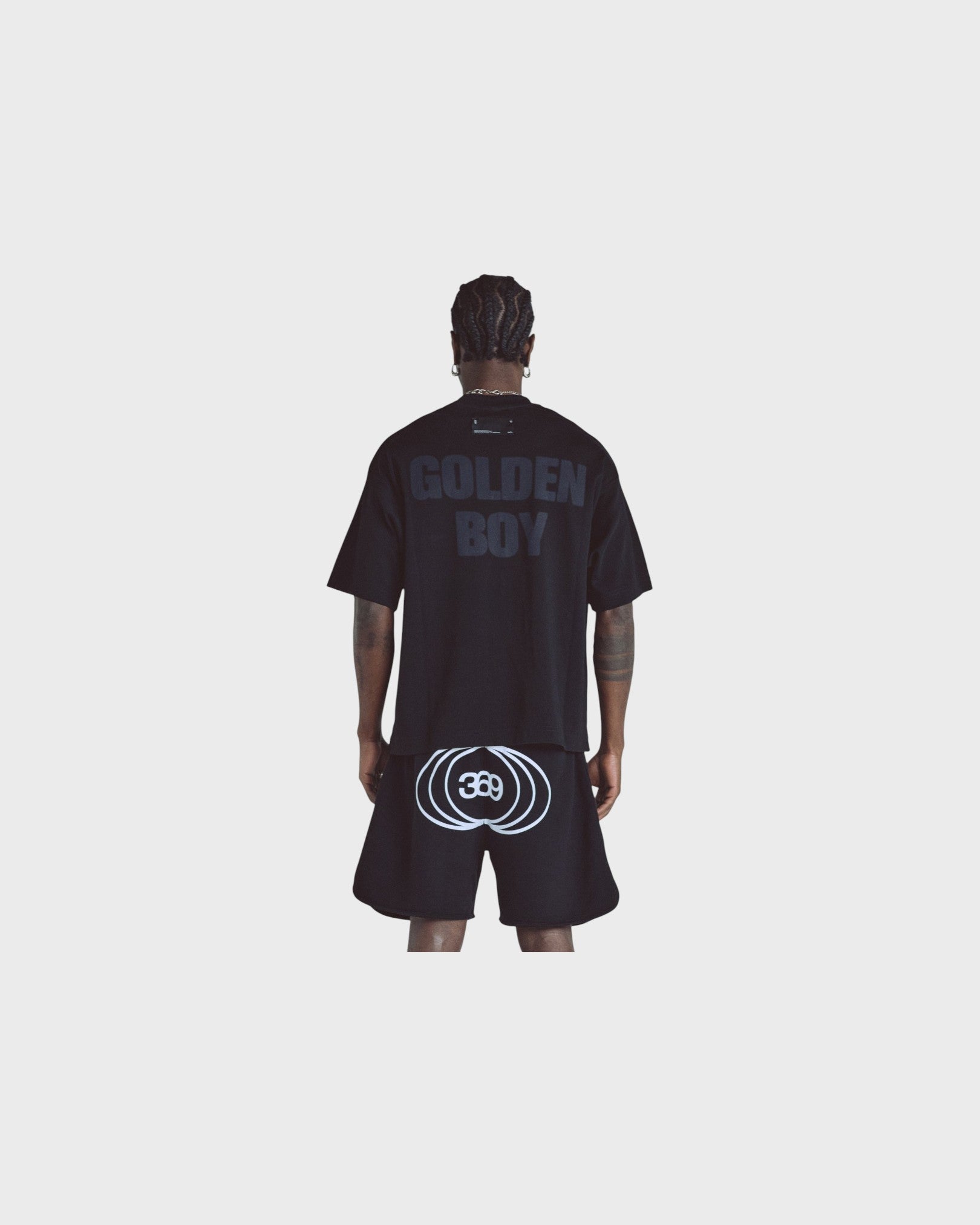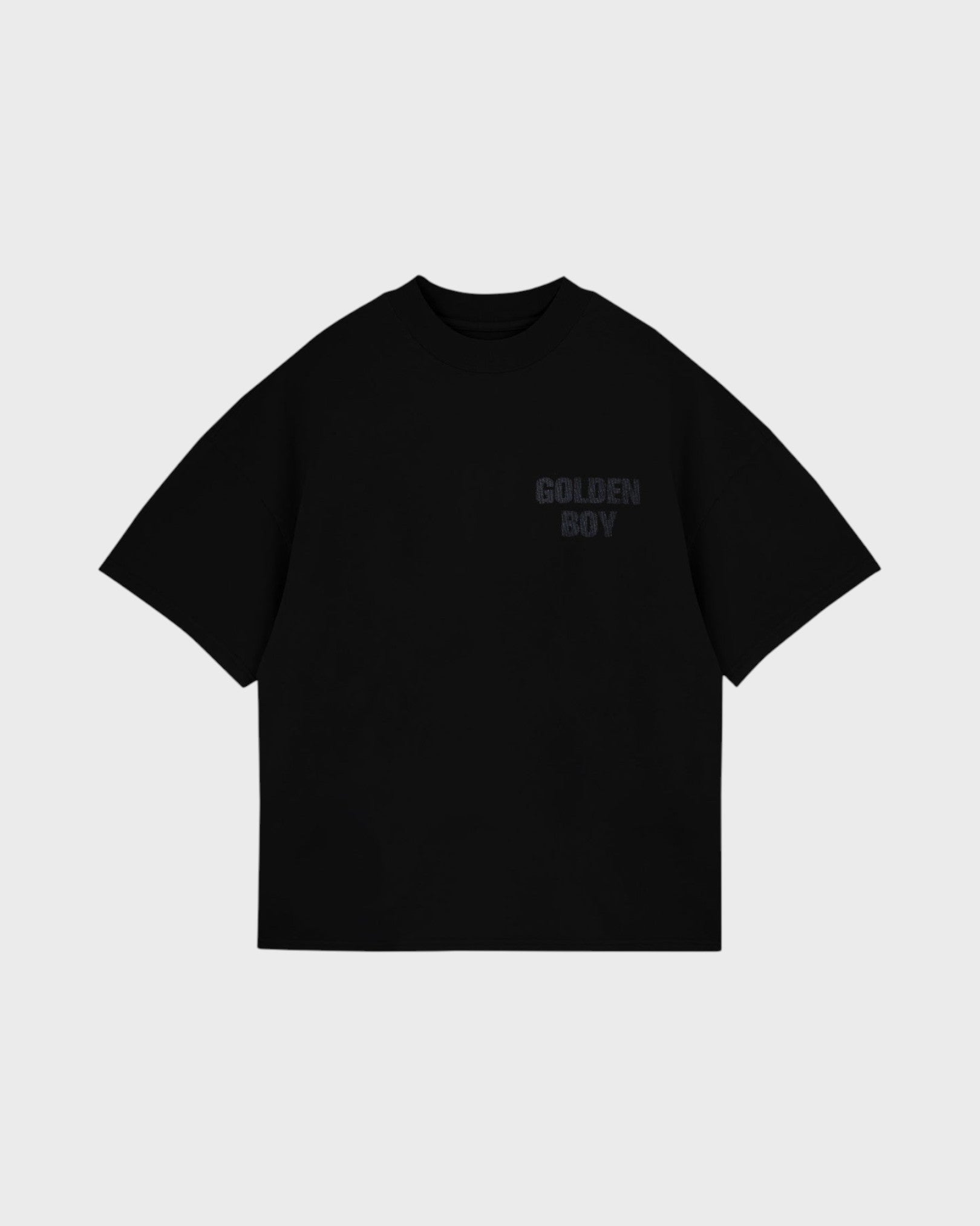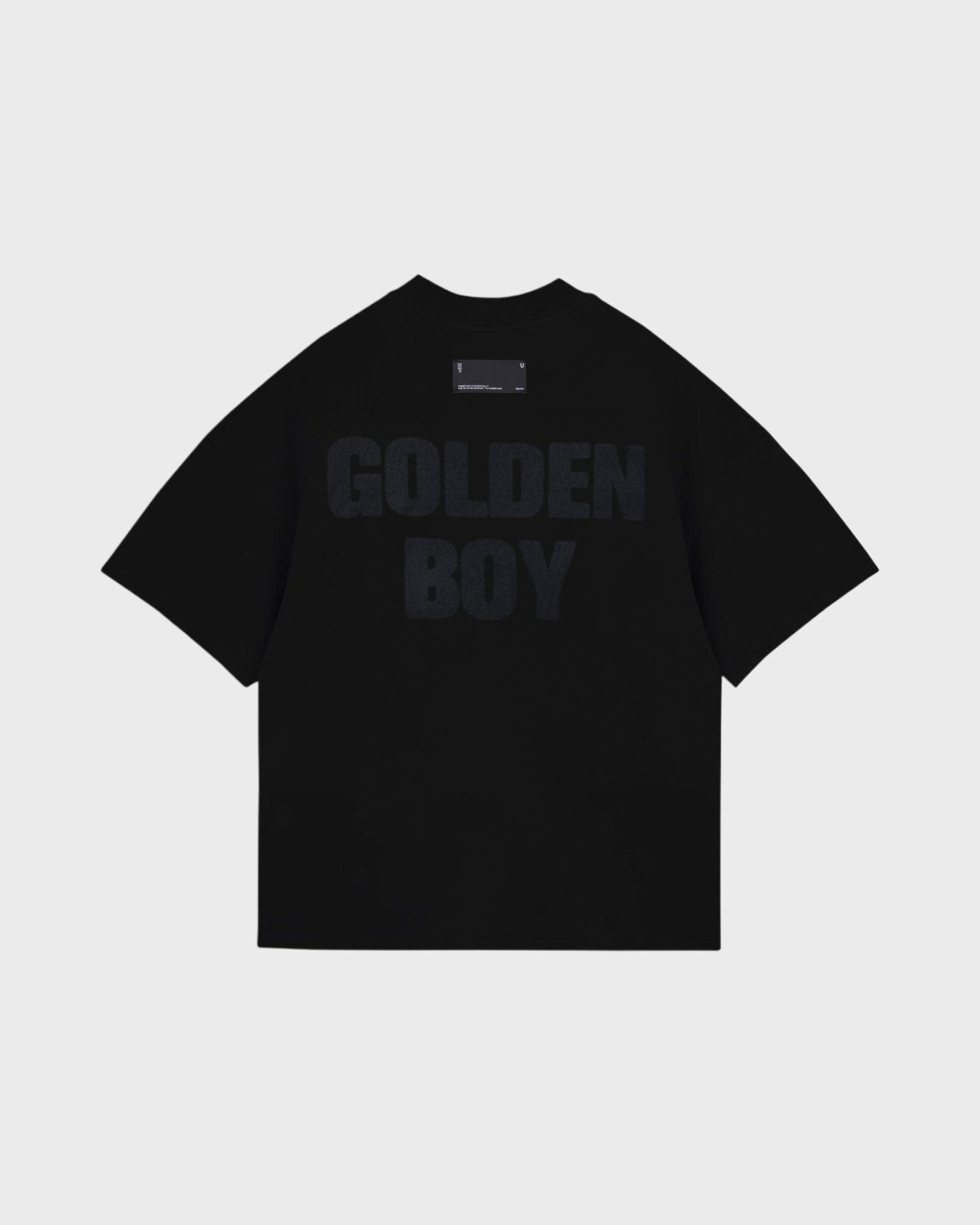 BLACK T-SHIRT WITH A BOXY FIT, MADE WITH 100% HEAVYWEIGHT COTTON FABRIC (290G), INTERVENED WITH TEXTIILE PRINT ON THE FRONT AND BACK.