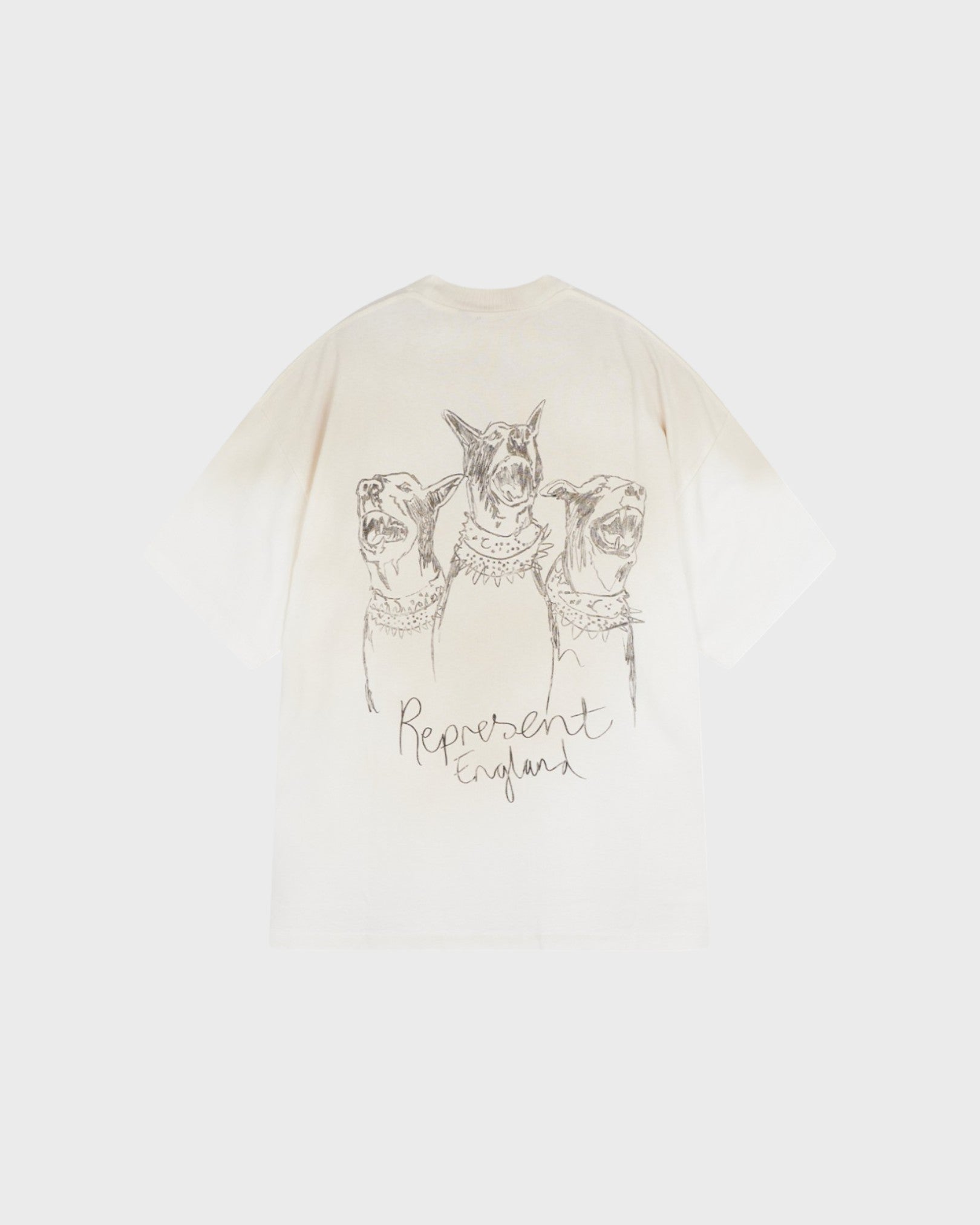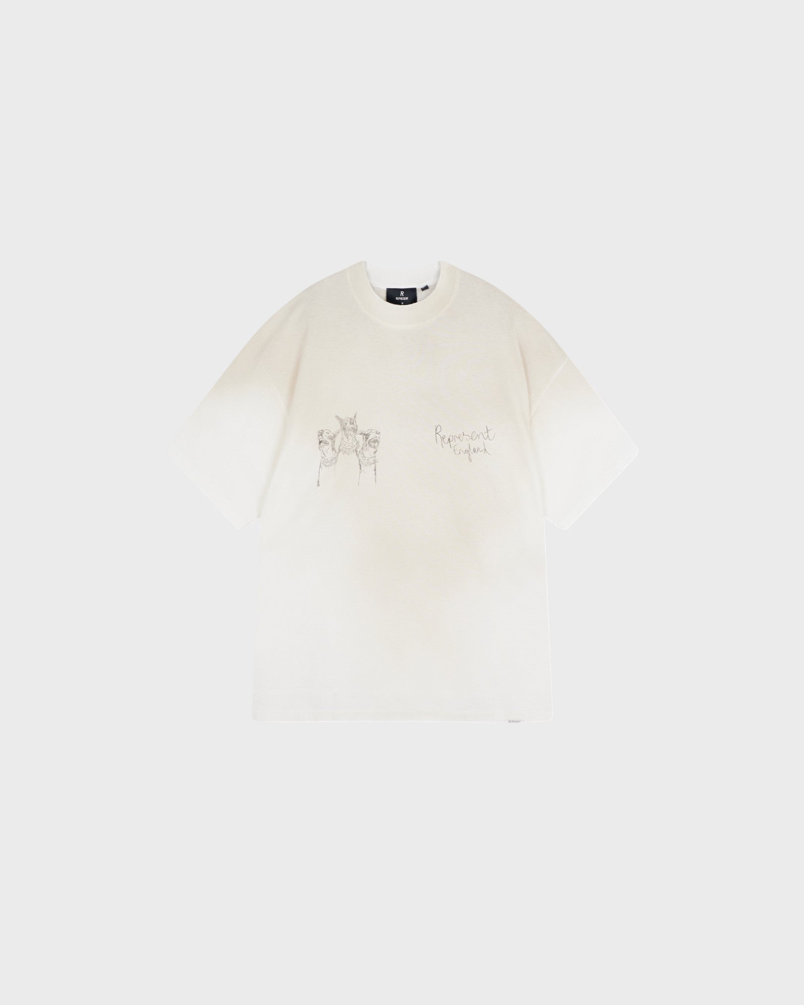 Introducing the Hand Drawn Thoroughbred T-Shirt in Flat White, crafted from 220GSM cotton with an oversized fit. The t-shirt carries a hand-drawn Thoroughbred graphic with Represent England script across the chest and back. Designed with a rib collar and ladder stitch detailing, the piece is subtly distressed at the hem and cuffs for a vintage edge. Finished with our signature metal bar at the hem.