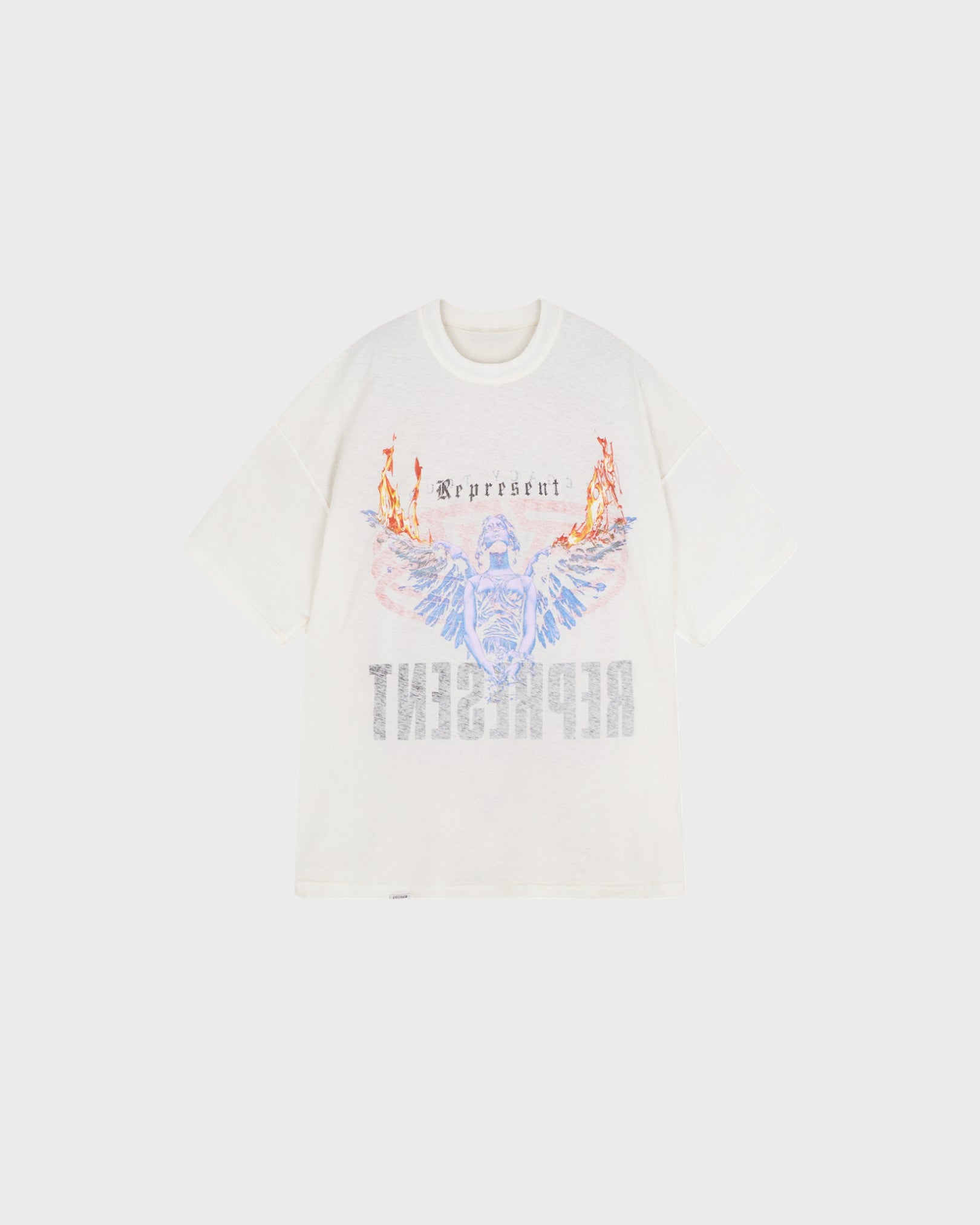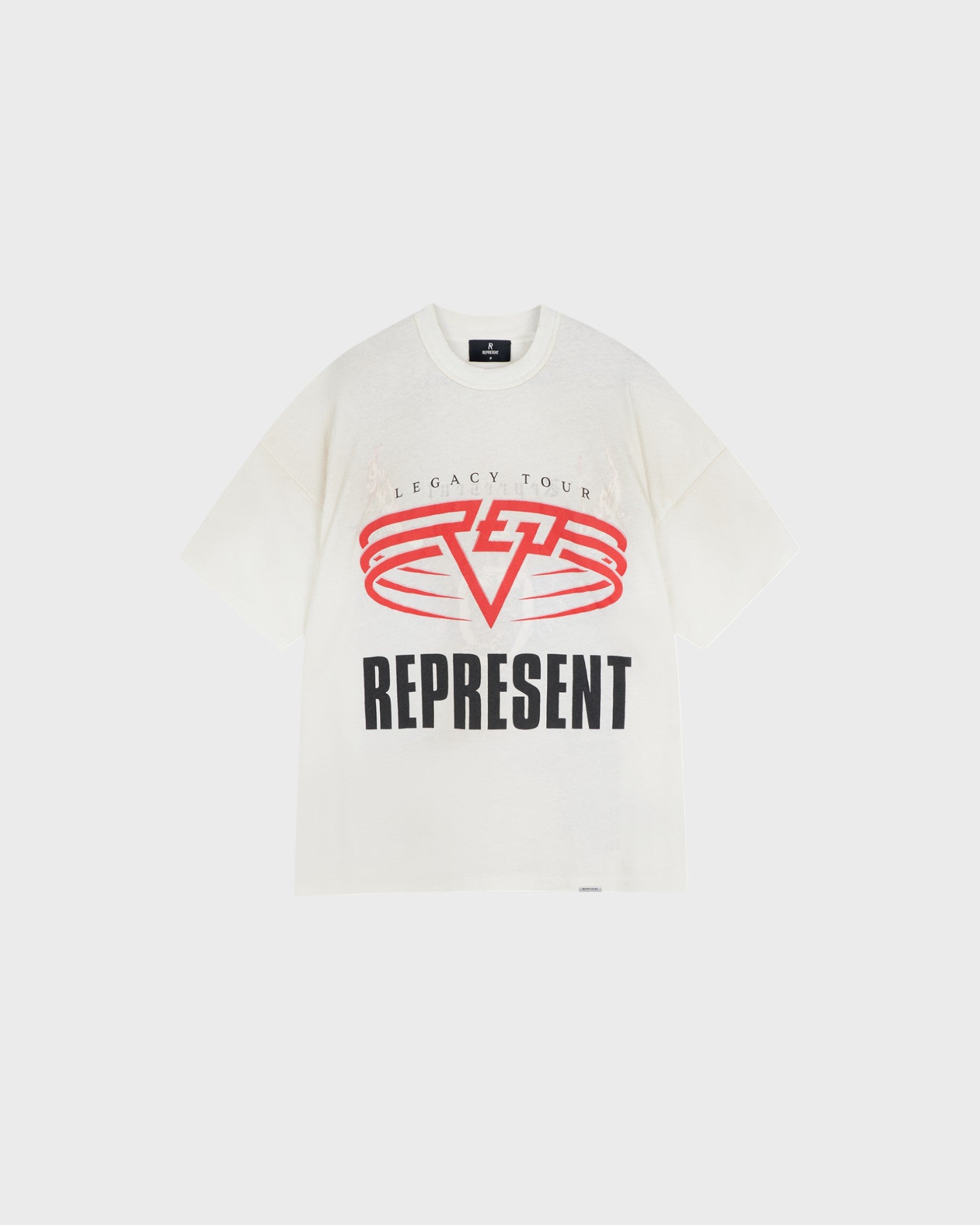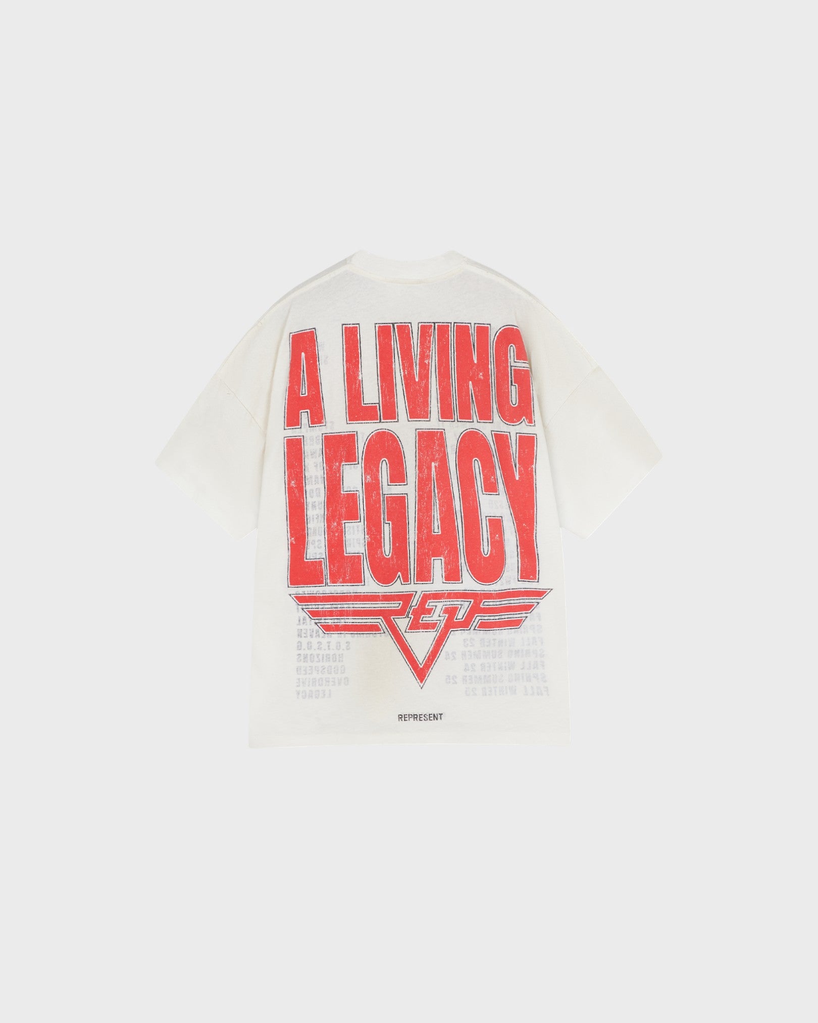 Introducing the Reversible Living Legacy Tour T-Shirt in Flat White, cut to an oversized boxy fit from lightweight cotton-hemp jersey. Finished with a vintage wash, this reversible style features mixed print techniques across both sides, offering two unique graphic looks in one. Subtle distressing, raw edges, and our signature metal bar at the hem complete the design, while tear-out and tacked labels ensure clean wear whichever way it’s styled.