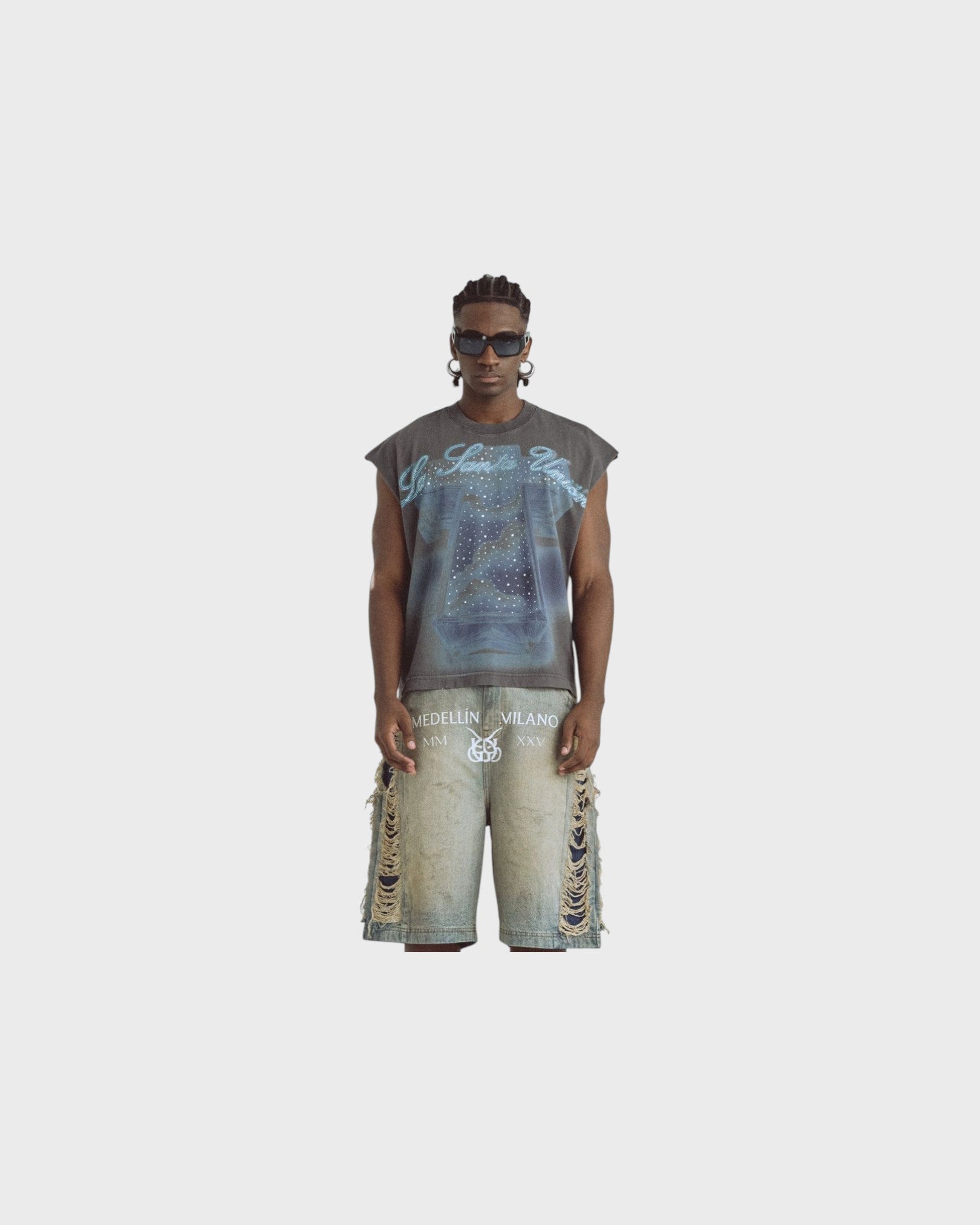Santa Unión Cruz Sleeveless T-Shirt - Vintage Gray