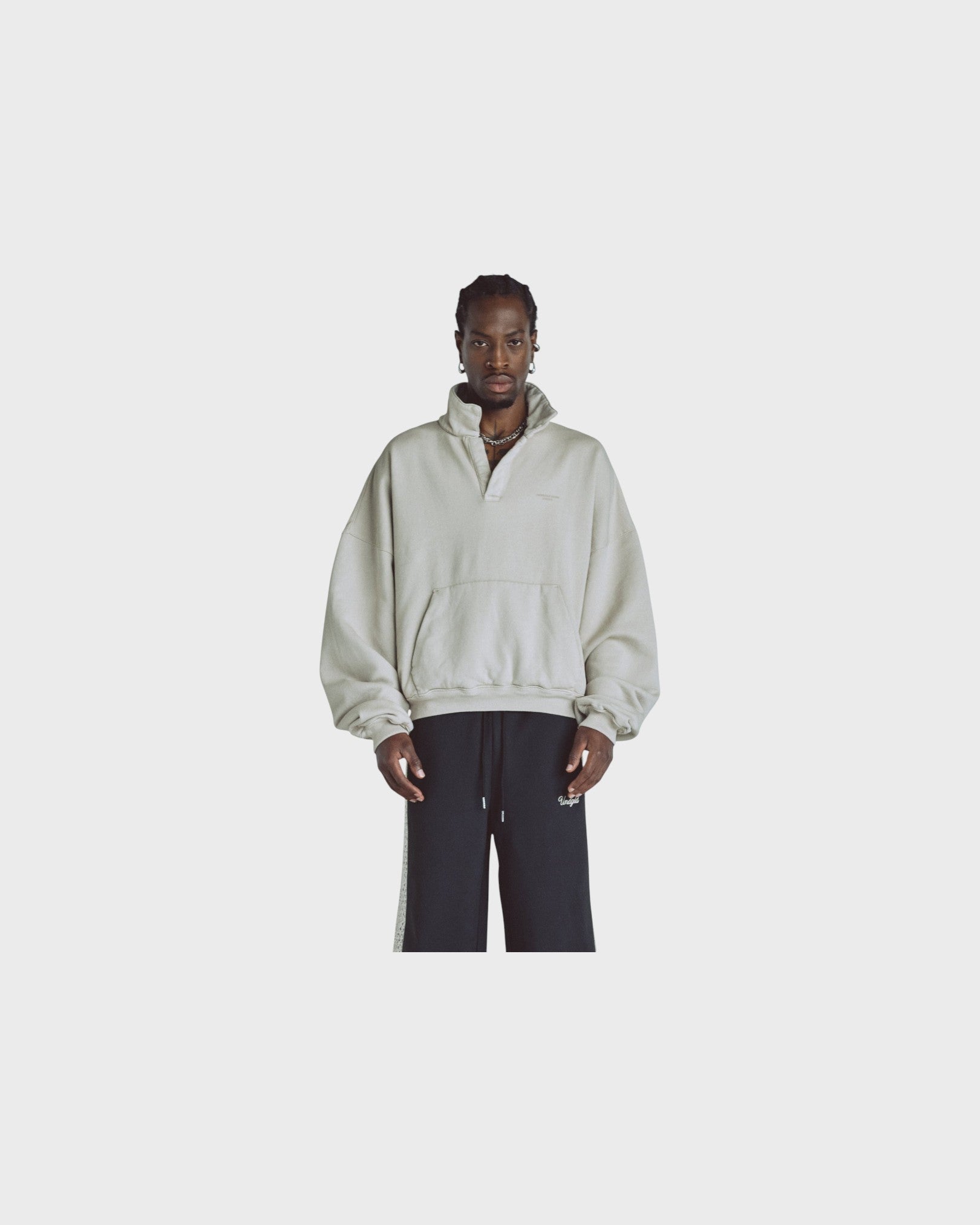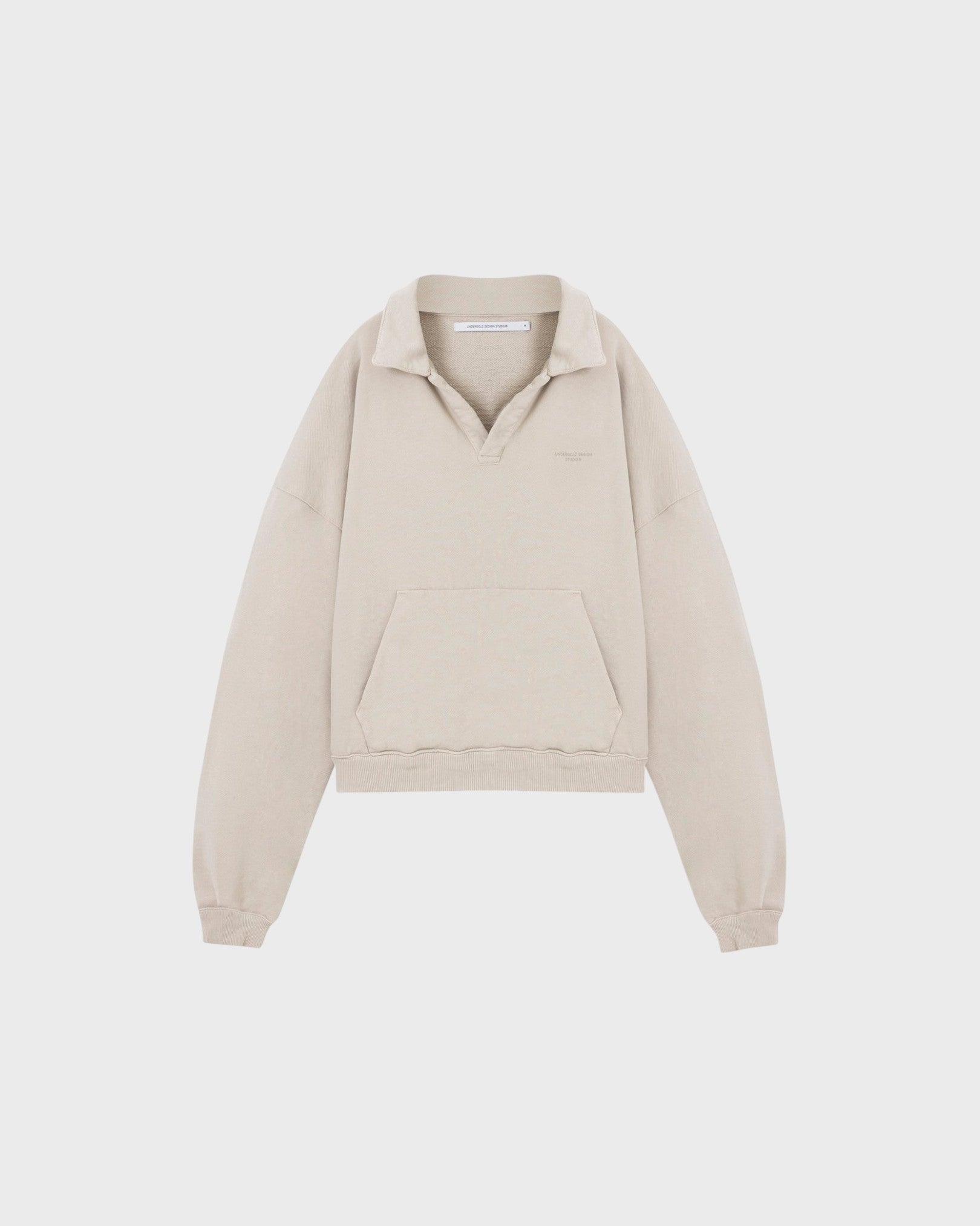 CREAM POLO COLAR SHIRT WITH A BOXY FIT, MADE OF 100% COTTON, INTERVENED WITH TEXTILE PRINT IN HEART STITCH ON THE FRONT AND CENTERED ON THE BACK.