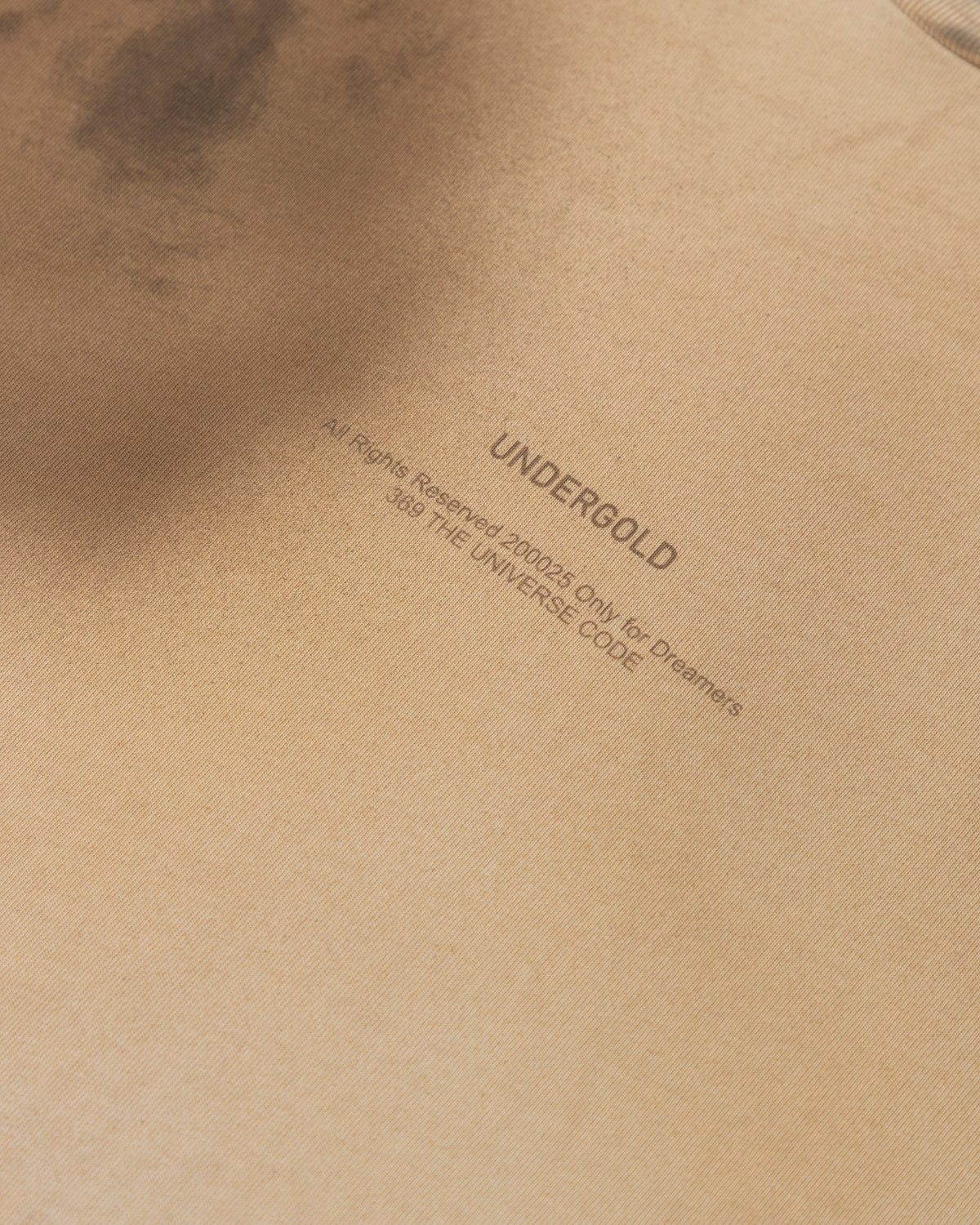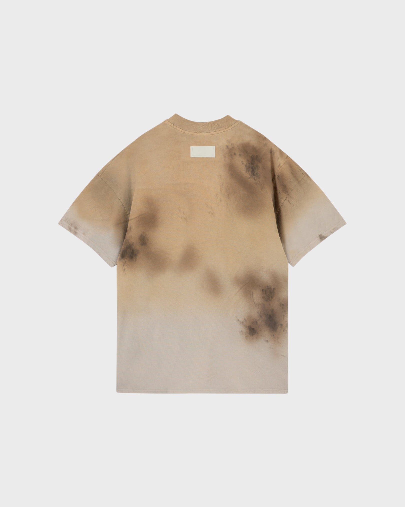 BURNED CREAM T-SHIRT WITH A REGUALR FIT, MADE OF 100% HEAVYWEIGHT COTTON FABRIC (250GR), INTERVENED WITH TEXTILE PRINT CENTERED ON THE FRONT.
