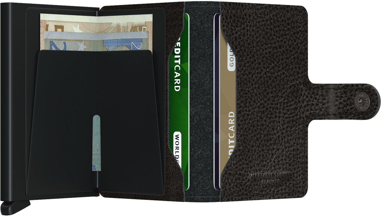 Miniwallet Veg Black- Black is vegetable-tanned full-grain leather, made in Italy from European cowhide.