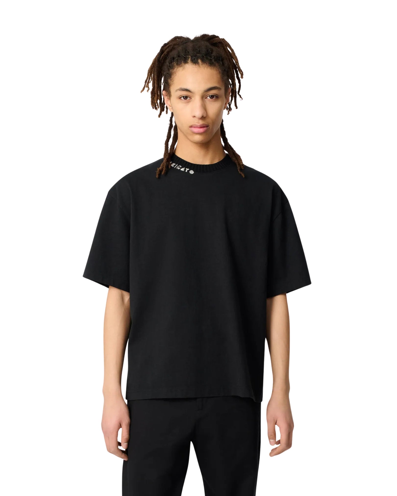 The oversized Apex T-shirt is crafted in Portugal from organic cotton. A chunky ribbed neckline and hand-stitched ‘Arigato’ embroidery finish this piece.