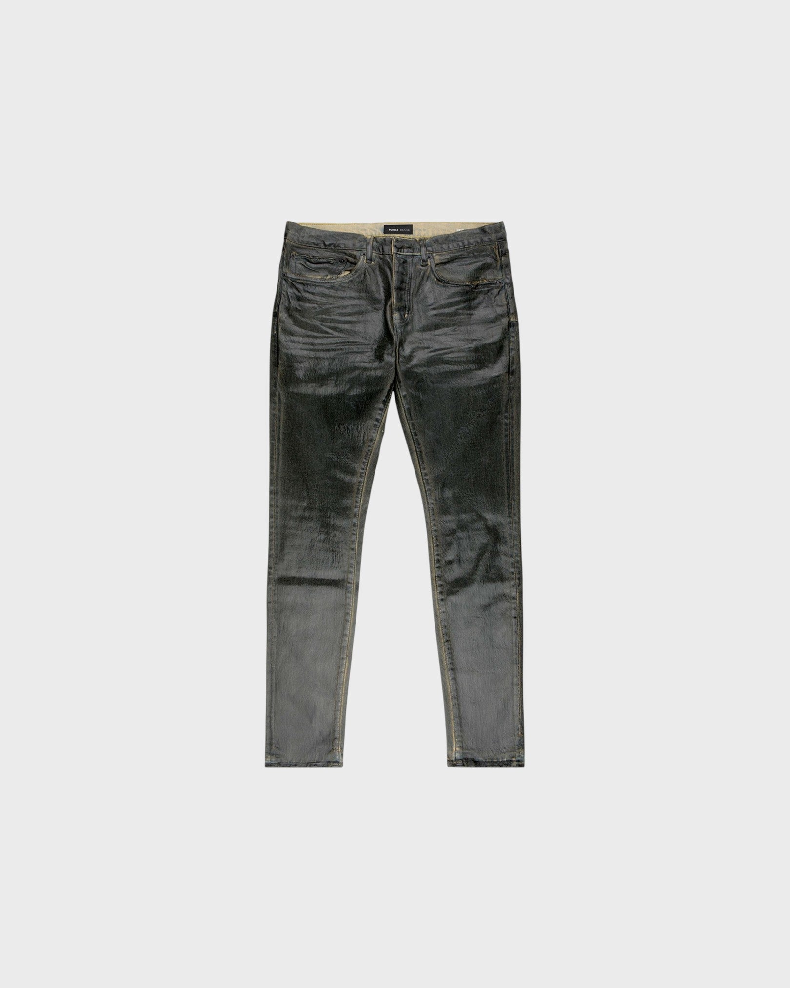 Crafted from premium brown stretch denim, this low rise skinny is coated and tinted in black for a patent like finish.