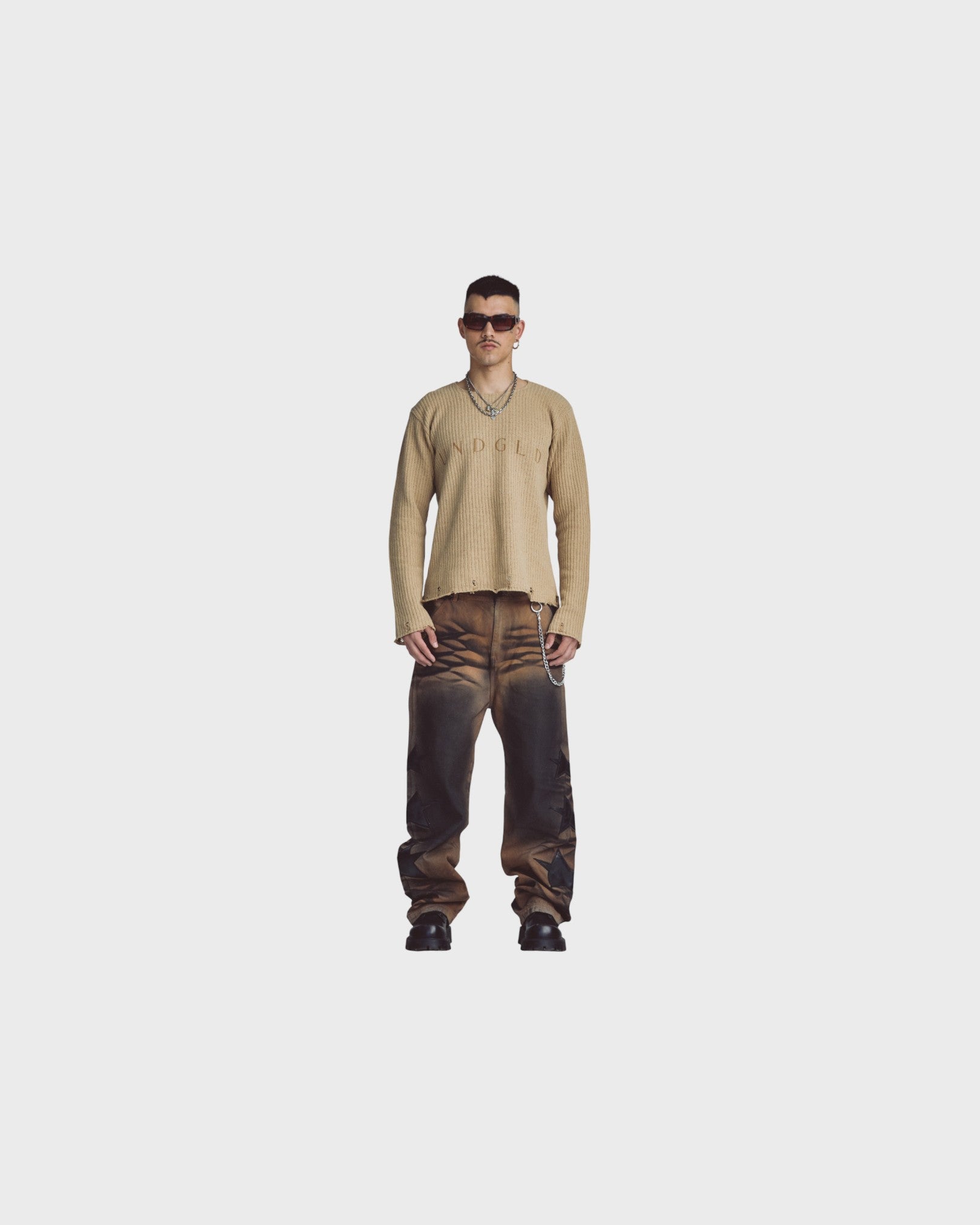 Stardust Basic Undgld Destroyed Knit Sweater - Cream