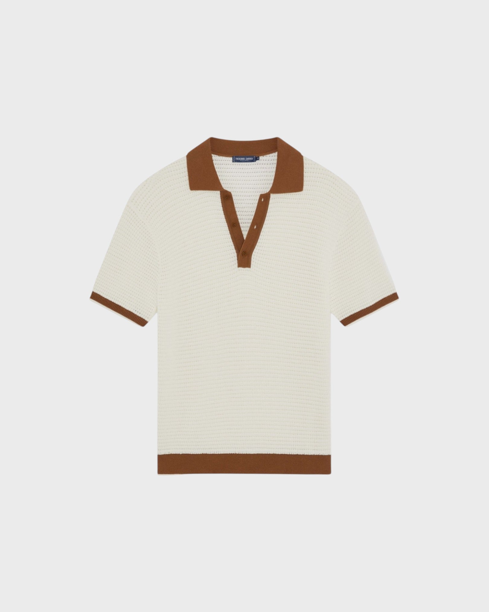A crochet-inspired take on our Vidal polo, crafted in a pointelle knit with a looser gauge. Featuring a contrasting collar and hems, this transeasonal piece is designed to be worn solo or layered.