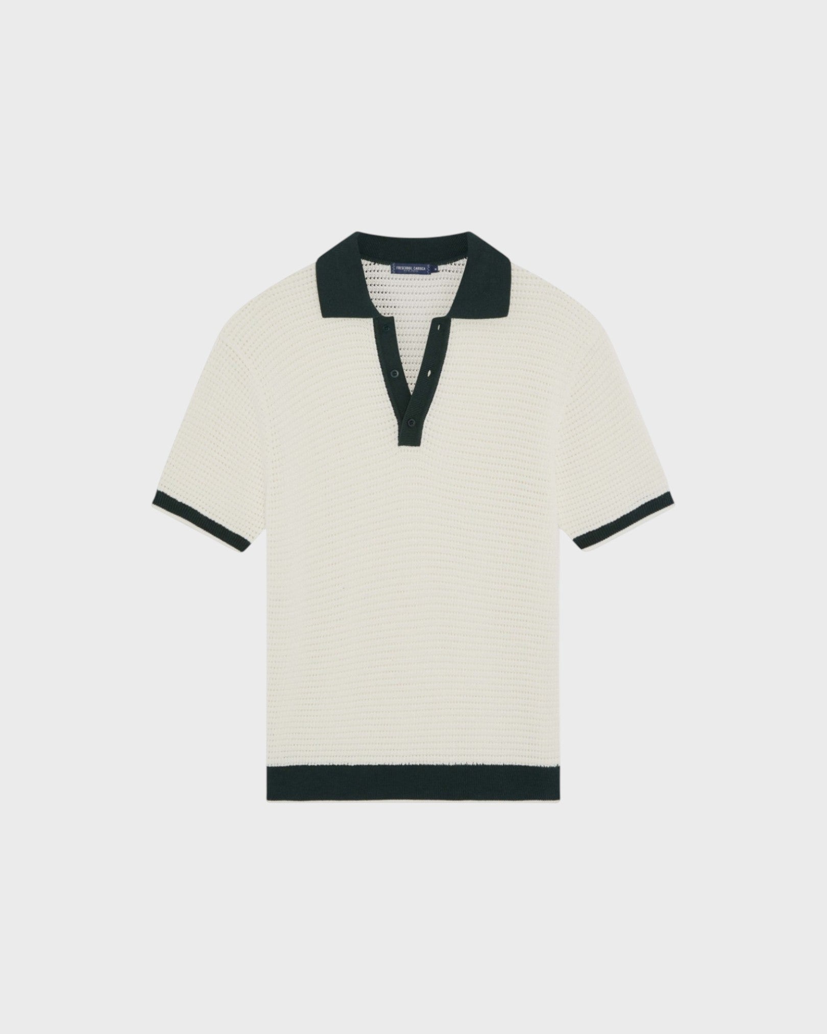 A crochet-inspired take on our Vidal polo, crafted in a pointelle knit with a looser gauge. Featuring a contrasting collar and hems, this transeasonal piece is designed to be worn solo or layered.